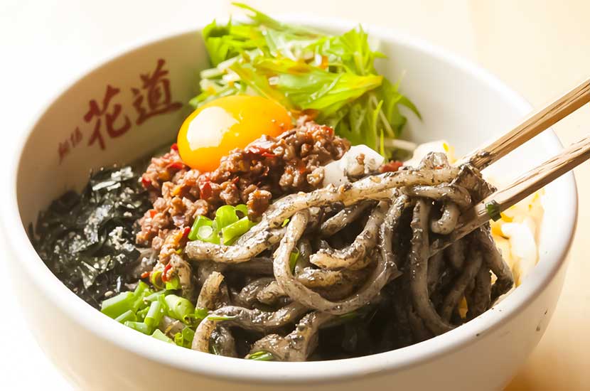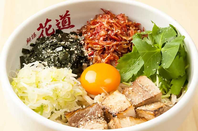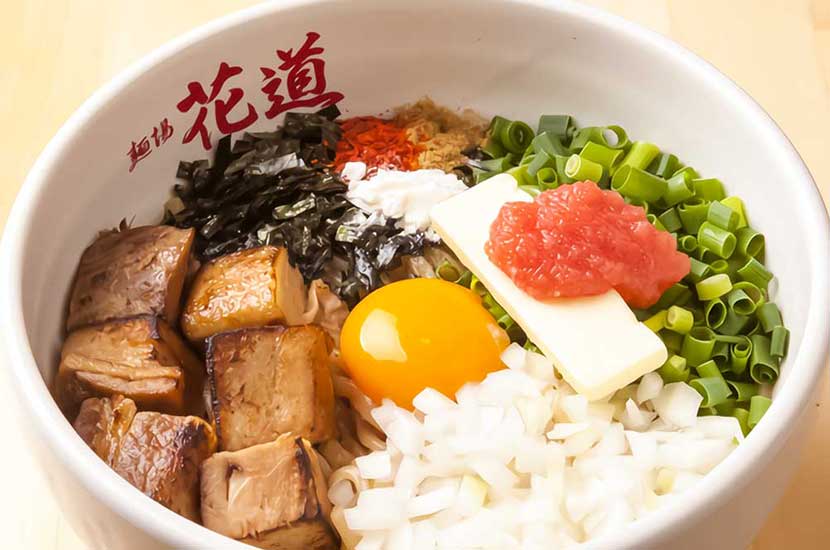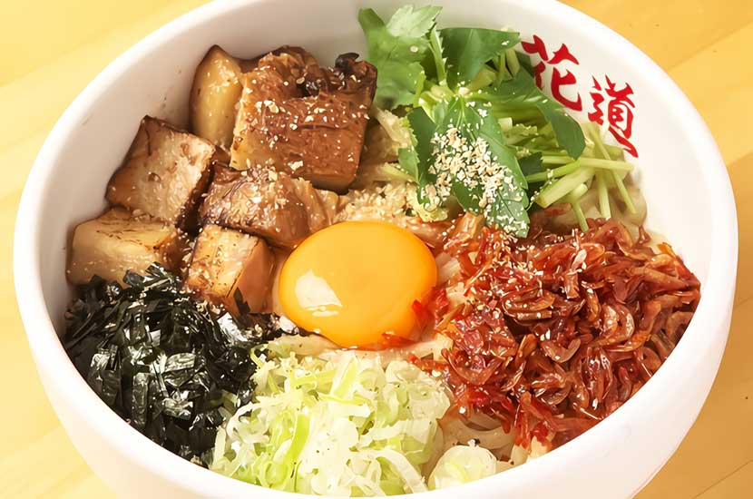 麺場花道 各務原店(めんばはなみち かがみはらてん)は、岐阜県各務原市那加石山町にあるまぜそば&ラーメン店。全粒粉を使用した自家製太麺、動物系と魚介系のWスープ、ラードに野菜や魚介の香りづけをした油、低温調理と2度炊きで味を染み込ませたチャーシューなど、食材の全てにこだわり、花道だけにしかできない味をご提供。まぜそば、ラーメンどちらもお薦め。ご来店をお待ちしております。